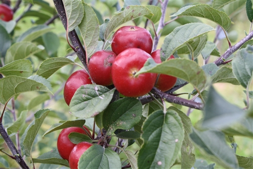 Red apple that ripens in September. Good resistance to scab, mildew, cedar apple rust and fireblight. Needs pollinator. Medium size vigorous grower and best disease resistance of any apple. Very productive with Macintosh flavor.